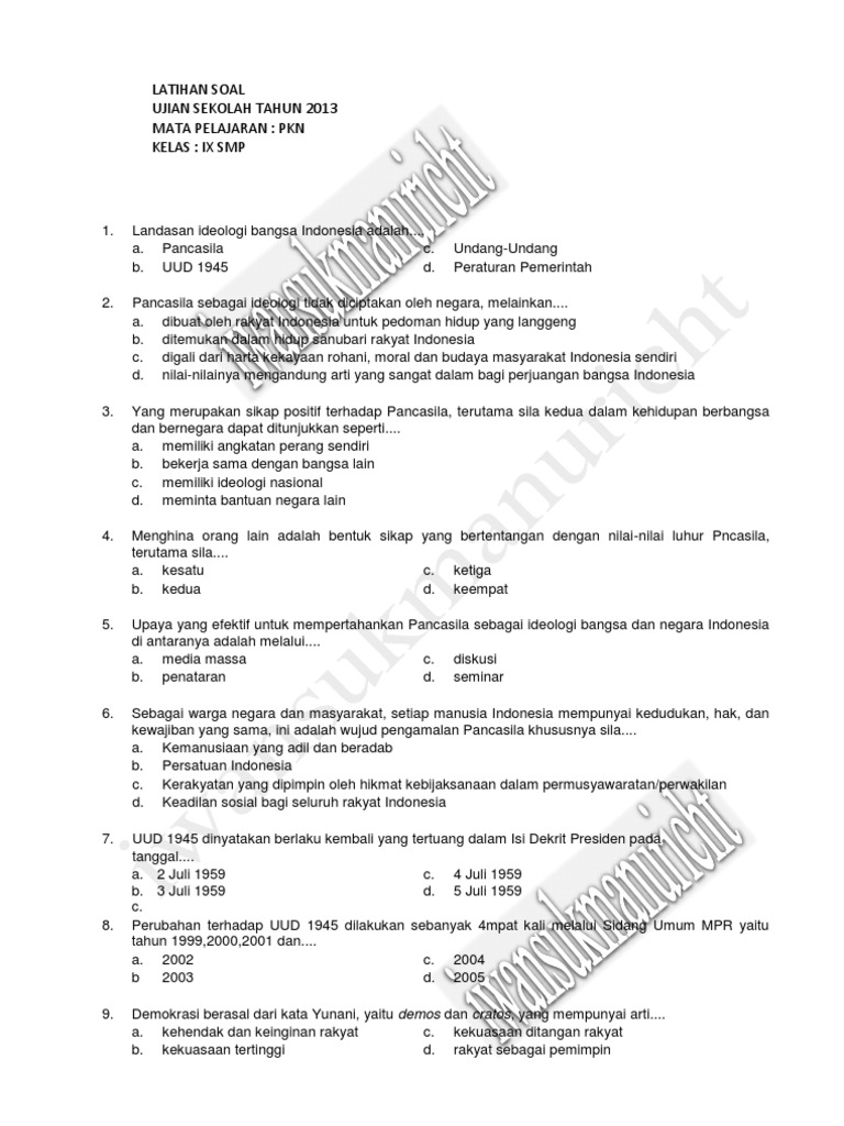 Latihan Soal Uas Pkn Smp Kelas Ix Tahun Pelajaran 20132014