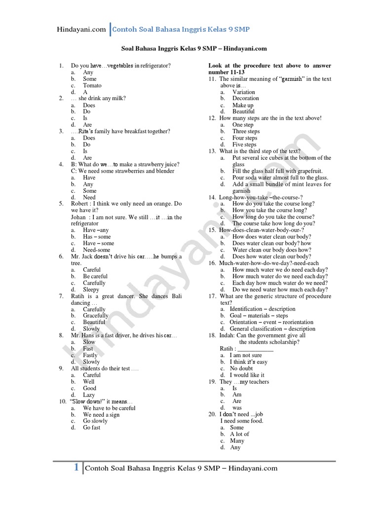 Hindayani Com Soal Soal Bahasa Inggris Kelas 8 Smp Dan Pencerah