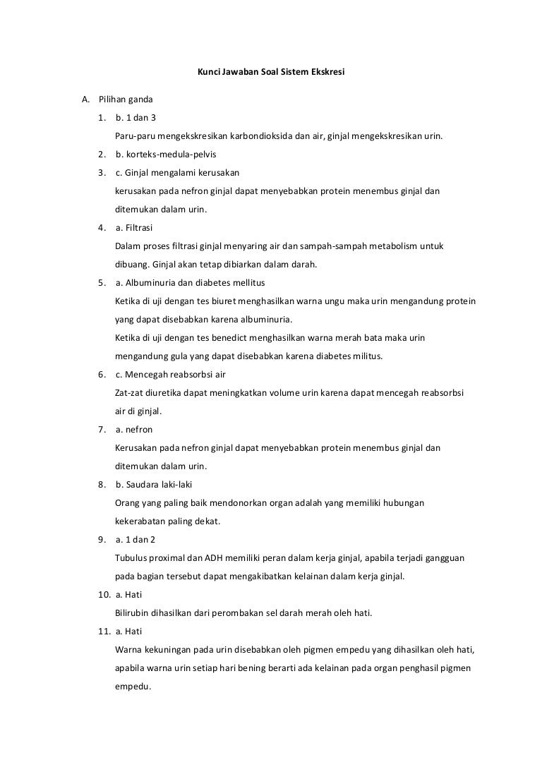 Akan tetapi walaupun sudah kami sediakan kunci jawaban kami harap pembaca tetap mengkoreksi kunci jawaban yang ada pada soal sistem ekskresi di artikel ini. Tentu dua jenis soal sistem ekskresi tersebut sudah kami sediakan kunci jawaban pada akhir artikel. C Yang bukan akibat kelainan sistem ekskresi adalah diabetes melitus.