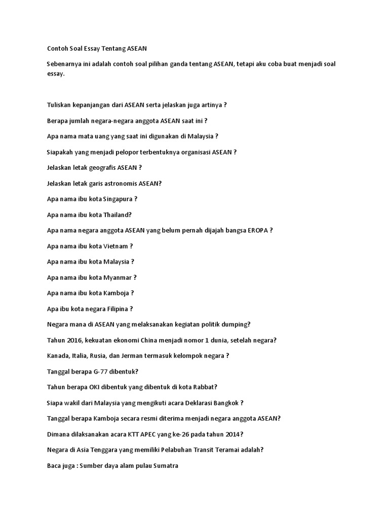 Contoh Soal Essay Tentang Asean Terbaru Penulis Cilik