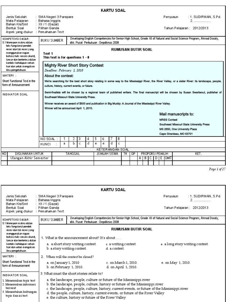 Kartu Soal Uas Bahasa Inggris Kelas Xii Ganjil 2012 2013