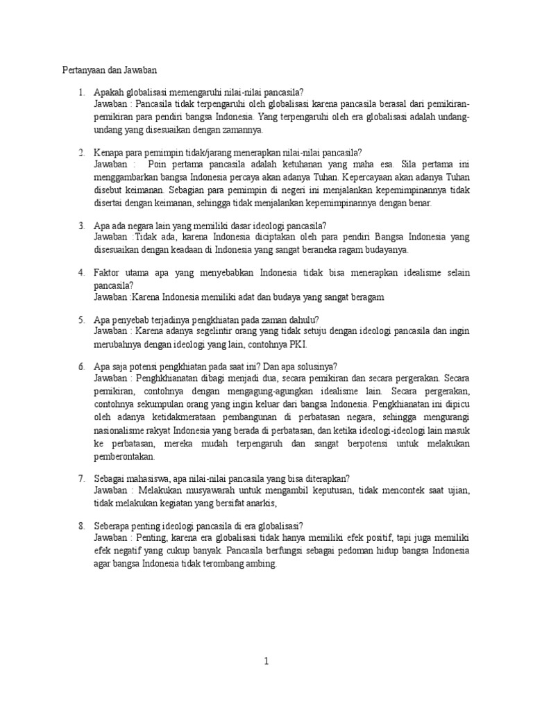 Doc Soal Tanya Jawab Pendidikan Pancasila Shinta Nadya Academia Edu