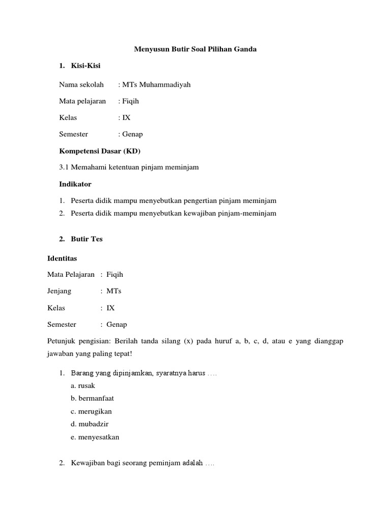 Contoh Soal Fiqih Pilihan Ganda Dan Jawabannya Contoh Soal Terbaru