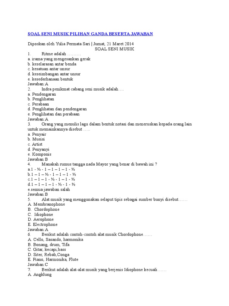 Soal Seni Musik Pilihan Ganda Beserta Jawaban