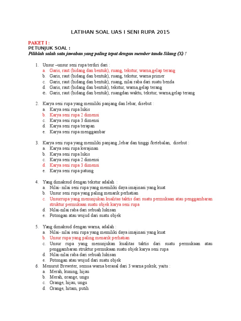Soal pilihan ganda seni budaya kelas 10 semester 1. Setelah sedikit penjelasan di atas mari kita simak berikut ini merupakan 50 contoh soal pilihan ganda Sejarah untuk kelas 10 Semester 1. 70 Soal Tentang Seni Musik SMP MTs dan Kunci Jawaban. 40 Soal SBK Kelas 4 dan Kunci Jawaban Kurikulum 2013 4.