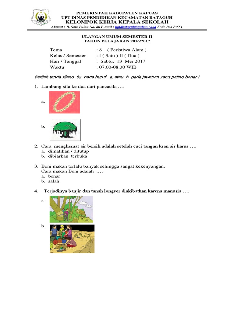 Soal Ujian Semester Kelas 1 Tema 8 Sd Mi Antapedia Com